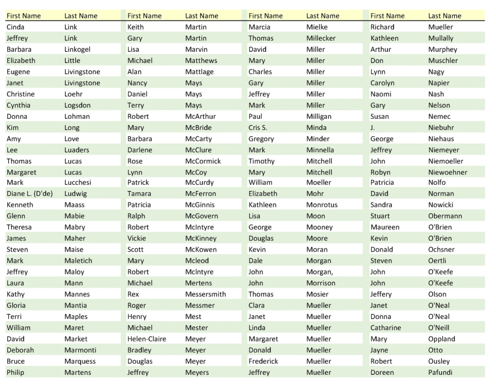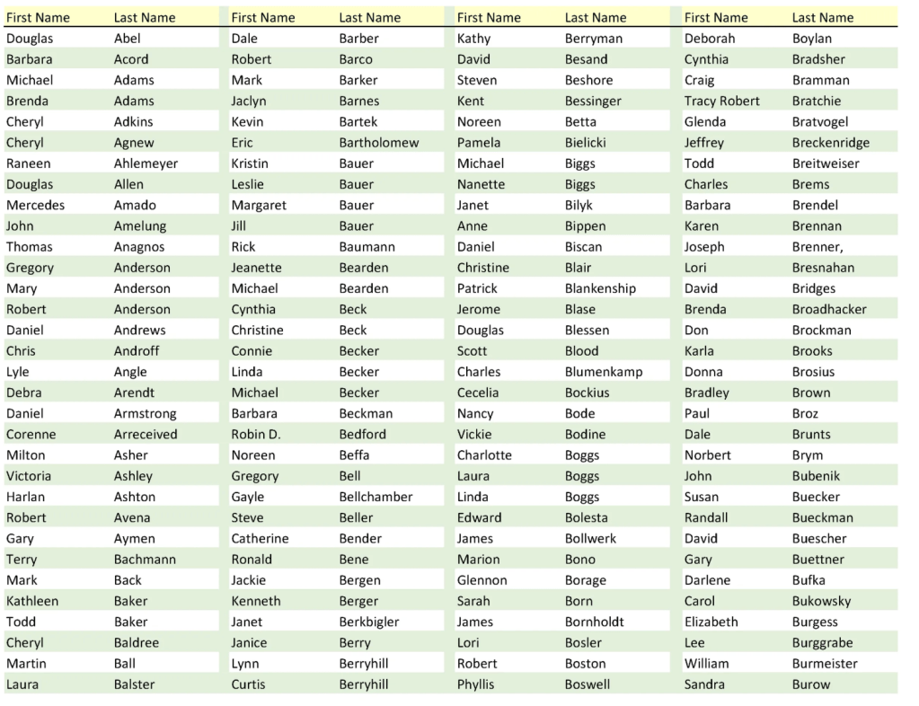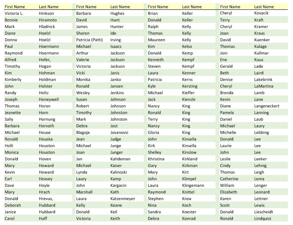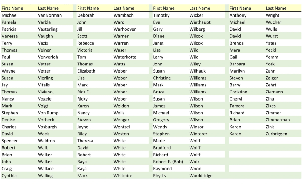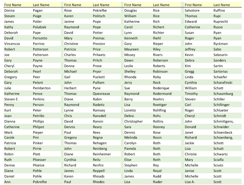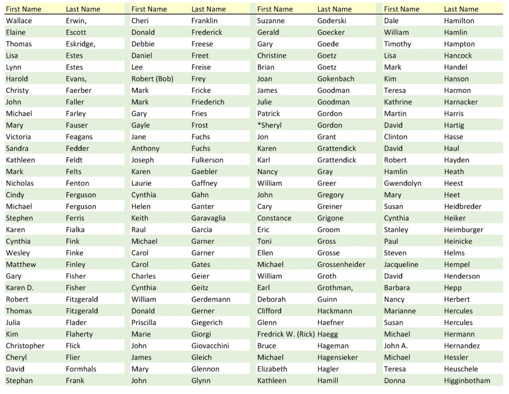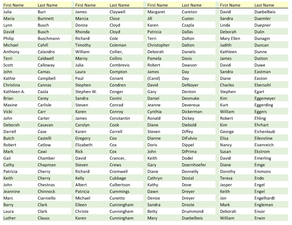 These are all of the names assembled from those who graduated in May 1975. It includes those who have passed away.