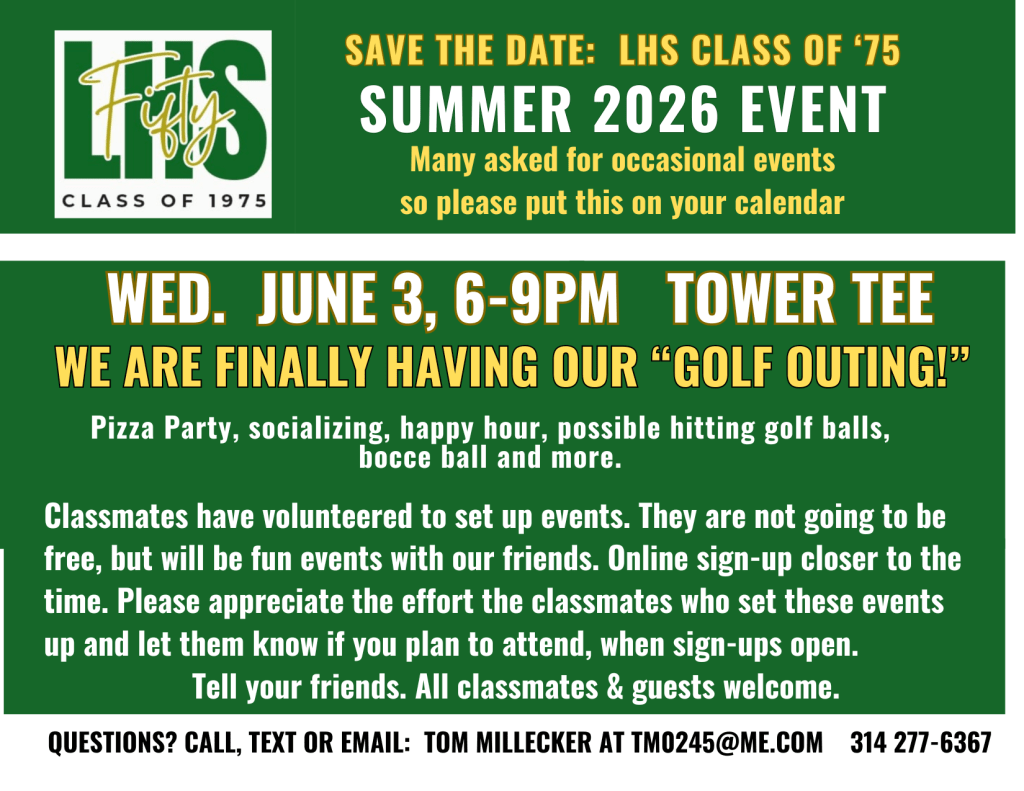 Also, if you are on Facebook, join our Lindbergh Class of ’75 Official Page. It’s a private page and is updated often.